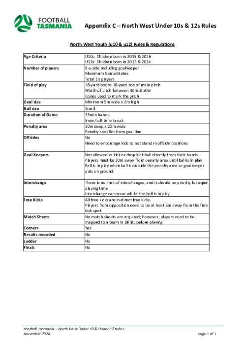 Authored by FT Media Authored on Thu, 01/23/2025 - 13:26 Document Appendix C - North West U10 & U12 Rules.pdf